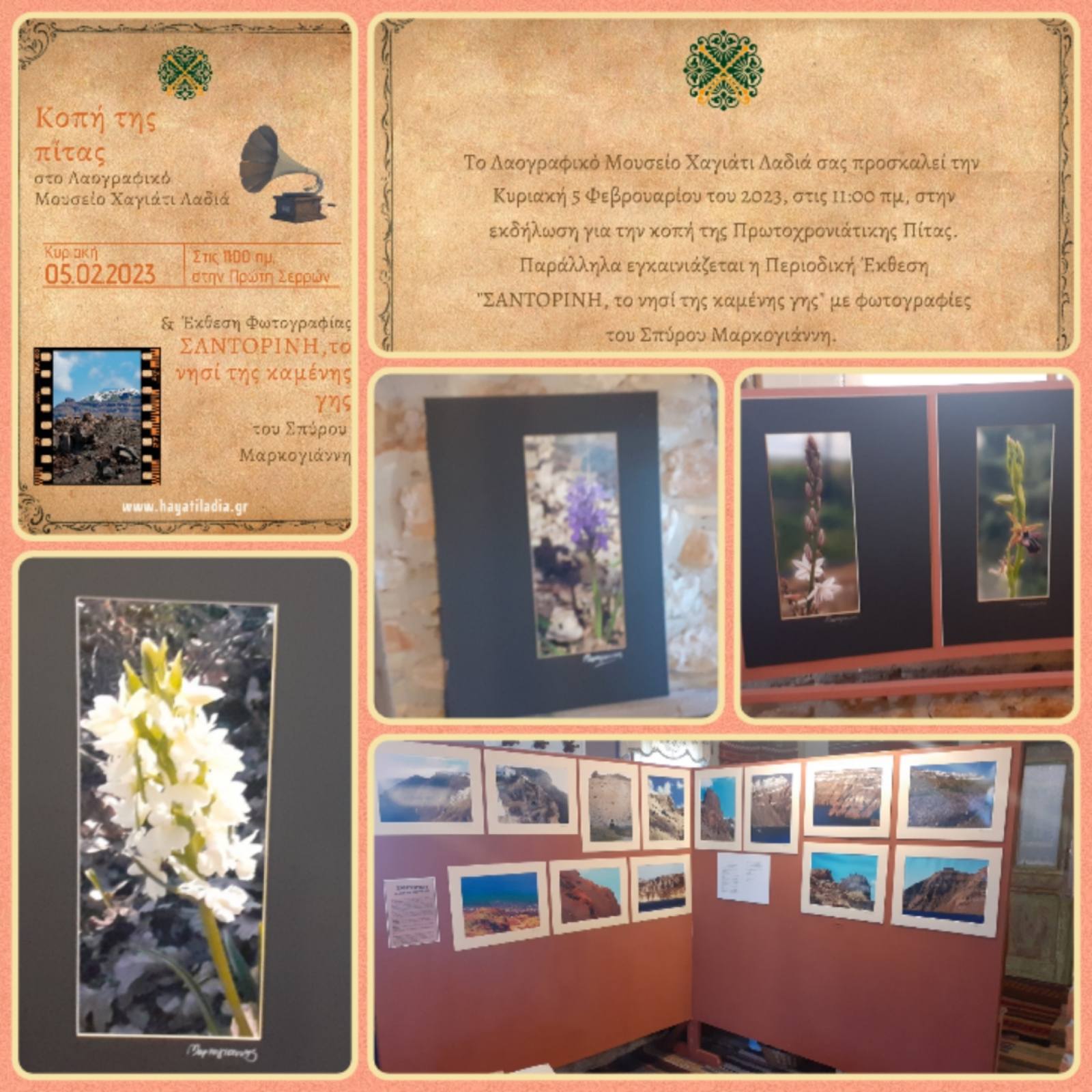 Κυριακή 05 Φεβρουαρίου 2023, στις 11:00πμ, Εγκαίνια περιοδικής έκθεσης Φωτογραφίας, "Σαντορίνη, το νησί της καμένης γης" του Σπύρου Μαρκογιάννη.
